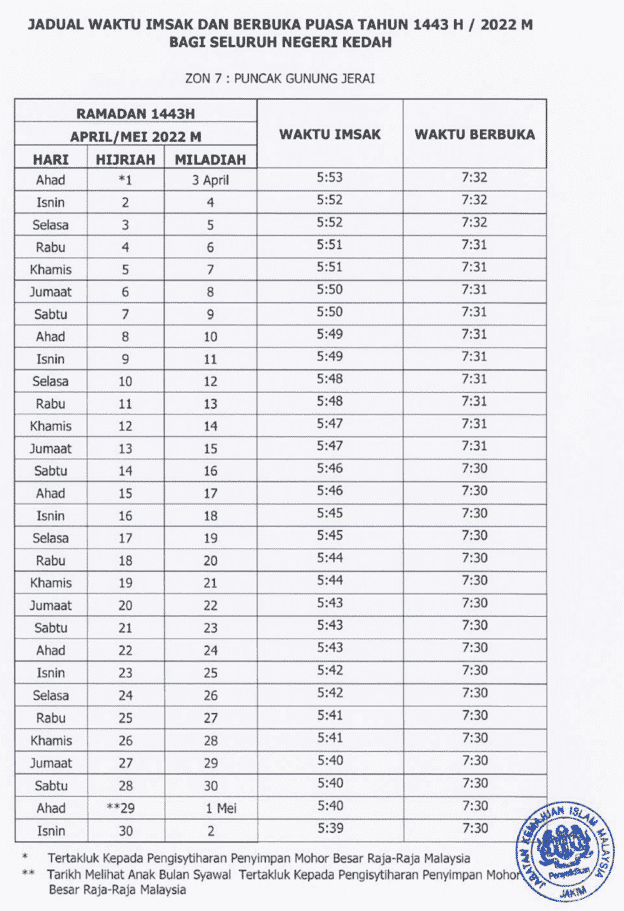 Jadual Kedah 2022 Waktu Berbuka Puasa Dan Imsak 1443